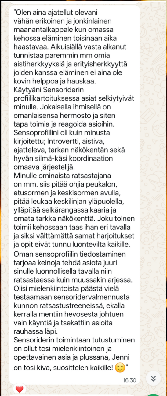 Asiakaspalaute: Ratsastajan sensovalmennus